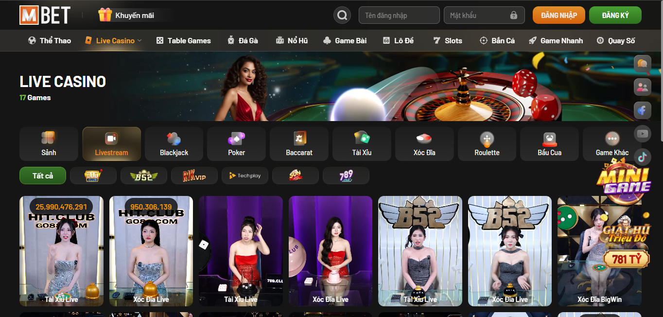 Tại MBET, người chơi có thể tham gia từ cược bóng đá online, casino live online, đến các game hot như slot game online, baccarat, roulette trực tuyến hay poker online. Tất cả được phát triển bởi các nhà cung cấp phần mềm hàng đầu, đảm bảo tính công bằng và trải nghiệm chân thực.